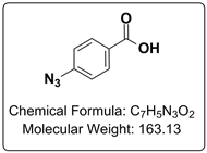 Package Sizes: 1 gram and 5 grams Product Numbers: 14108-1 and 14108-5 Product Name: 4-azidobenzoic acid Alternative Names: p-azidobenzoic acid; 4-ABA; HSAB acid Specifications Appearance: White Solid Purity: is ≥ 97% Storage: 4 °C, protected from light