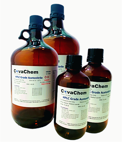 HPLC Grade Acetonitrile Product Description CovaChem's HPLC Grade Acetonile is a high purity solvent (> 99.9%), ideally suited for HPLC applications and general laboratory use. CovaChem's HPLC Grade Acetonitrile is 0.2 micron filtered, and also exceeds all ACS specifications. Package Sizes: 1 Liter, 4 Liters and 4 x 4 Liters Product Numbers: 16302-1, 16302-4, 16302-4x4