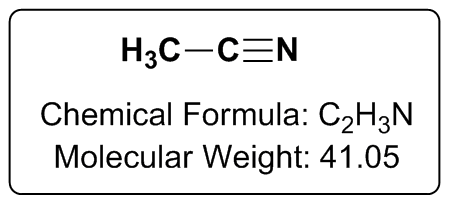 Properties Physical State: Liquid Melting Point: - 48 °C (lit.) Boiling Point: 81 - 82 °C at 760 mmHg (lit.) CAS#: 75-05-8 Chemical Formula: C2H3N Molecular Weight: 41.05 Country of Origin: USA Tariff Code: 2926.90.5050 UN Transportation Code: 1648 Important Notes: (1) $ 25 Hazardous transportation charge for domestic shipments is INCLUDED in the price listed online. (2) Due to the weight and hazards associated with this product, not all shipping options are available for this product. After receipt of order, a customer service representative may contact you to modify shipping option. |
